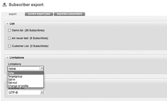 | Limitations can be made by the choice of target groups, opt in or opt out timeframes, or timeframes in which the subscriber has made profile changes.