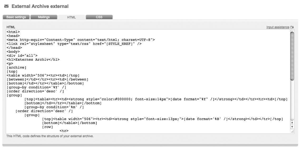 With an external archive you can present your dispatched mailings on your website. Click 'create' to generate a new external archive.