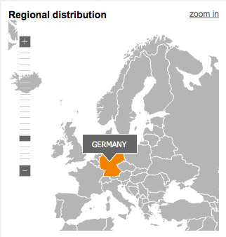 Journeyrocket generated based on the IP addresses of subscribers an overview of the 'local distribution'. If openings were counted in one country, this will be color coded. By clicking on the country a magnified view appears and cities become visible as points. The larger the dots, the more Openings were counted in this city. Move the cursor over an item, you see the Openings to the location. The data relate to the unique Openings (unique).