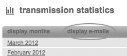 In the transmission- statistic you see the data collected from Journeyrocket (Traffic, Total). Also you see, if exist, the numbers of test-sendings, clicks on the subsriber-link and the number of subscribers who have completed the optin-confirmation. Next to the view 'display months' you also can select 'display e-mails'. So Journeyrocket outputs the above mentioned figures for each mailing.