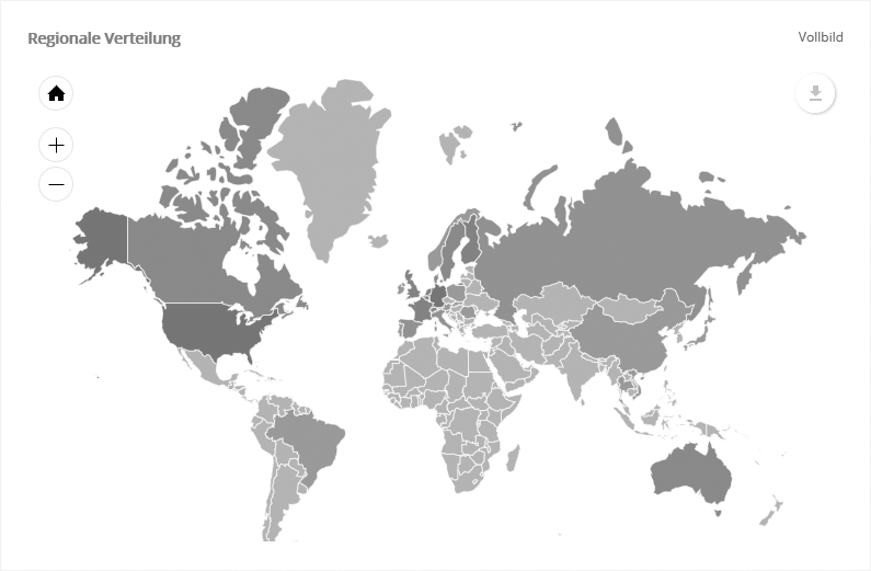 Tipp: Klicken Sie links in der Legende auf 'Zustellungen', um im Diagramm nebenan das große Segment 'Zustellungen' auszublenden und die "kleinen" Segmente auf 360° zu zoomen. Auch deren Prozentzahlen passen sich der neuen Anordnung an, so dass sich das Verhältnis der verbleibenden Segmente gut vergleichen lässt. --> Regionale VerteilungDie Karte zeigt die regionale Verteilung der Mailing-Öffnungen, die automatisch per Geotargeting ermittelt wurden.